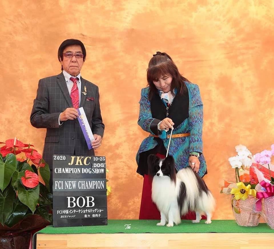 Because of the COVID-19 pandemic, JJ was only able to be shown once in 2020. He earned his last CACIB toward his FCI International and Championship title. Thank you Chie!!!
